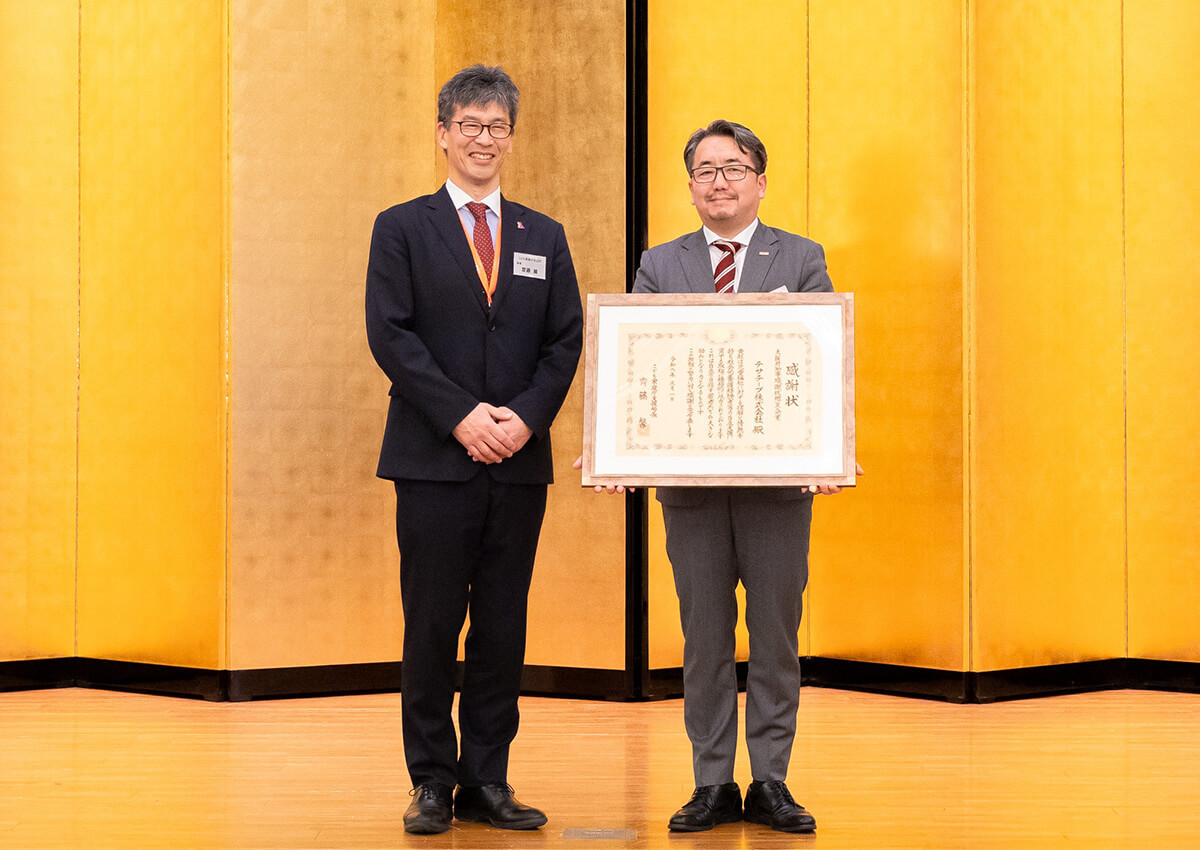 山崎製パン株式会社 大阪第二工場 執行役員工場長 染谷 正行 様に贈呈していただきました。